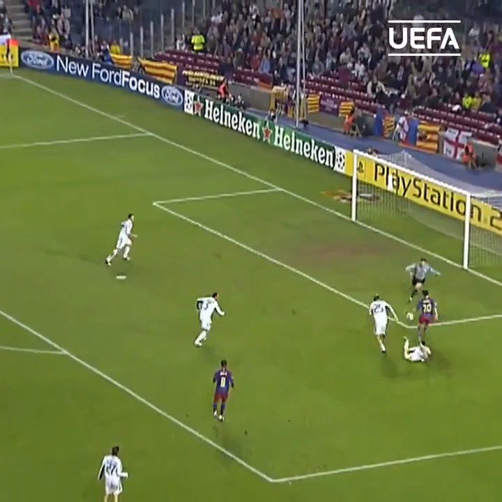 وفي عامه الـ 18 عشر وتحديداً في عام 2005 سجل ليونيل ميسي أول هدف مع برشلونة في دوري أبطال أوروبا خلال مواجهة باناثيناكوس اليوناني.