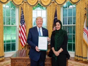 أول لقاء للسفيرة السعودية "الأميرة ريما" بالرئيس ترامب (صورة)