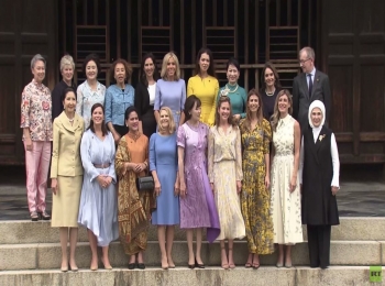 زوجات قادة دول العشرين يجتمعن في حديقة بمدينة كيوتو اليابانية ويطعمن الأسماك (فيديو)