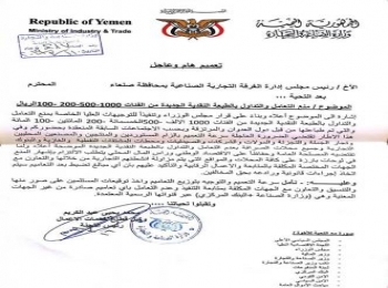 الحوثيون يجددون منع تداول العملات النقدية الجديدة المطبوعة عبر الحكومة (وثيقة)