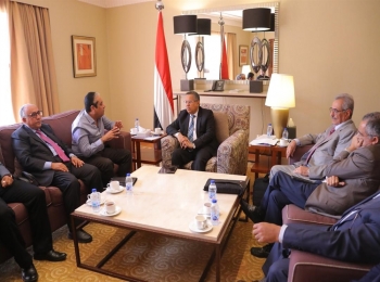 في لقائين منفصلين..الرئيس هادي يلتقي بهيئة مستشاريه واللجنة الإقتصادية
