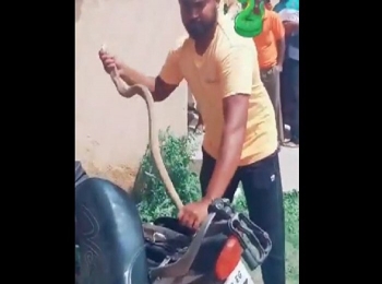 رجل يعثر على أفعى ضخمة داخل دراجته النارية