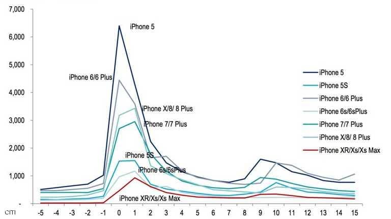 وأظهرت البيانات أن معدل بحث الأشخاص عن "آيفون XR" حول العالم، أقل من ربع معدل البحث على هاتف "آيفون 5" وقت صدوره، وأقل من ثلث معدل البحث على هاتف "آيفون X" وقت صدوره العام الماضي.