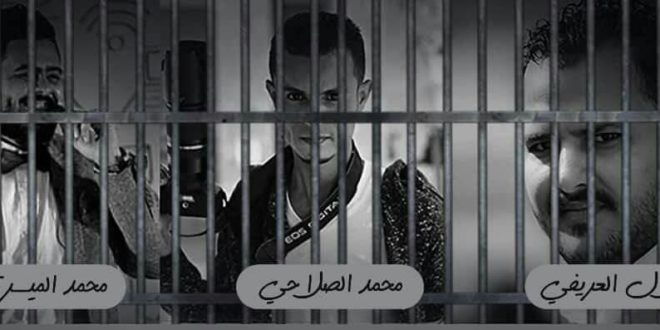 وتختطف جماعة الحوثي المسيطرة على مدينة الحديدة، 3 من الناشطين الإعلاميين، وهم: محمد خالد الميسري، ومحمد عبده الصلاحي، وبلال حيدر العريفي، الطلاب في قسم الصحافة والإعلام بكلية الآداب، منذ الأحد 21 أكتوبر الماضي، ولا يعرف مكان تواجدهم.