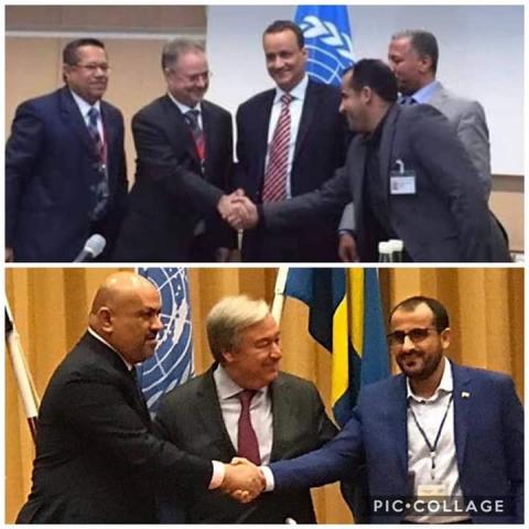 وكان ناشطون على مواقع التواصل الإجتماعي قد تداولوا صورة لمصافحة محمد عبدالسلام رئيس وفد الحوثيين مع وزير الخارجية السابق عبدالملك المخلافي تم التقاطها في مفاوضات سابقة، وفي المقابل قارنوا مع الصورة الأخيرة التي تم أخذها أثناء ختام مفاوضات السويد ويظهر فيها رئيس وفد الحوثيين وهو يصافح وزير الخارجية خالد اليماني.