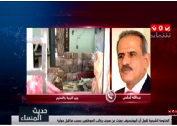 وقال وزير التربية والتعليم في الحكومة الشرعية، خلال مداخلته في برنامج حديث المساء الذي بثته قناة "يمن شباب" أمس الثلاثاء، إن اليونيسف عجزت حتى اللحظة عن صرف الحوافز الشهرية للمعلمين في المحافظات الخاضعة تحت سيطرة الانقلابيين، رغم مرور قرابة ثلاثة أشهر على استلام المنحة في 23 أكتوبر.