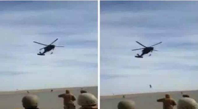 وبحسب مقطع الفيديو، الذي وثَّقه أحد أفراد الكتيبة، فإن توازن الجندي اختل فجأة خلال تدريبه على النزول بطريقة سريعة من الطائرة، فسقط أرضًا وتوفى على الفور.