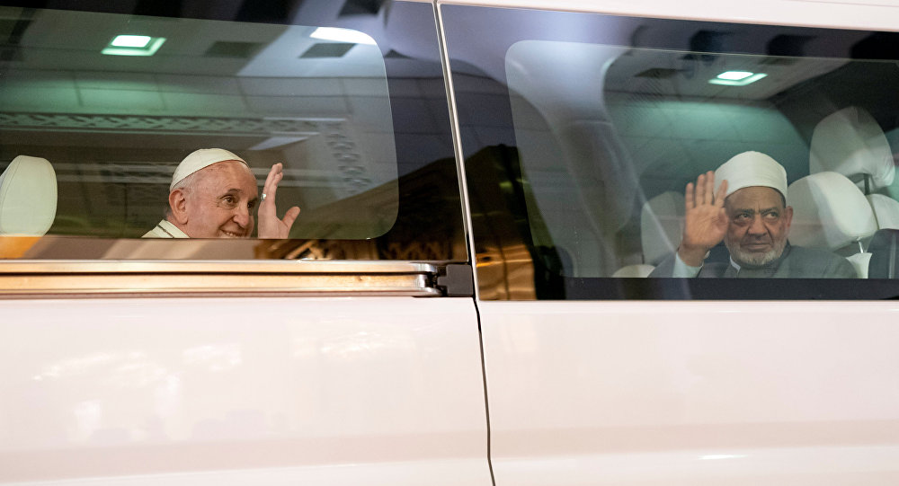 وتتزامن زيارة بابا الكنيسة الكاثوليكية والإمام الأكبر مع انعقاد المؤتمر العالمي للأخوة الإنسانية في أبوظبي، في تجسيد لتحول دولة الإمارات إلى عاصمة عالمية للتسامح.