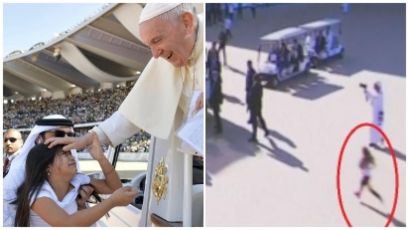 فاجأت فتاة صغيرة البابا فرنسيس، بابا الفاتيكان، صباح الثلاثاء، خلال جولته في مدينة زايد الرياضية في أبوظبي.