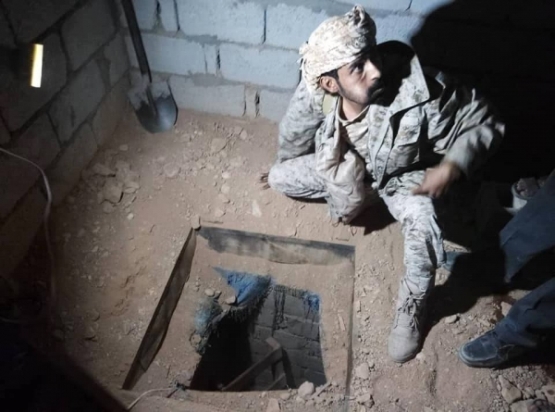 وقادت العملية إلى اكتشاف نفق سري من داخل إحدى البيانات المسورة بحوش كبير يمتد إلى أحد أنابيب النفط بميناء النشيمة بساحل شبوة.