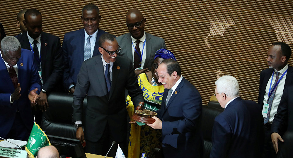 تسلم الرئيس المصري عبد الفتاح السيسي، رسميا رئاسة الاتحاد الأفريقي لمدة عام من الرئيس الرواندي بول كاغامي خلال الجلسة الافتتاحية للدورة الـ32 العادية للاتحاد في العاصمة الأثيوبية أديس أبابا.