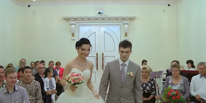 ويظهر الفيديو لحظة وقوف العريسين في المحكمة لتسجيل زواجهما، ولكن شيئا ما حدث للعريس.