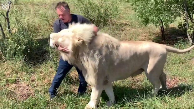مرت مجموعة من السياح بتجربة قد تحدث مرة في العمر عند رؤيتهم أسودا بيضاء نادرة جدا في مزرعة في جنوب أفريقيا.
