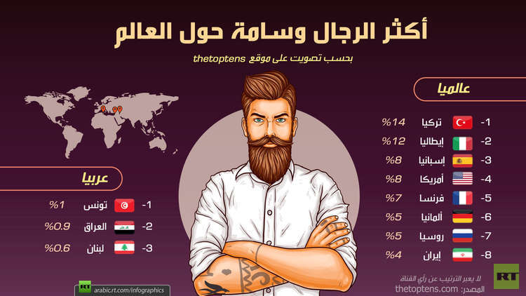 يظهر تصنيف لموقع thetoptens أن الرجال الأتراك هم الأوسم عالميا، ويليهم كل من الإيطاليين والإسبان. بينما يأتي الرجل التونسي بحسب تصنيف الموقع الأول عربيا ويليه كل من العراقي واللبناني على الترتيب.