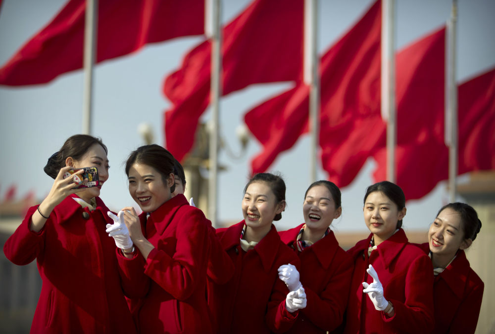 وتتلخص مهمة المضيفات توجيه المندوبين والوفود الرسمية، بعد انتهاء جلسة المجلس الوطني لنواب الشعب، إلى الحافلات لدى مغادرتهم القاعة الكبرى في بكين.