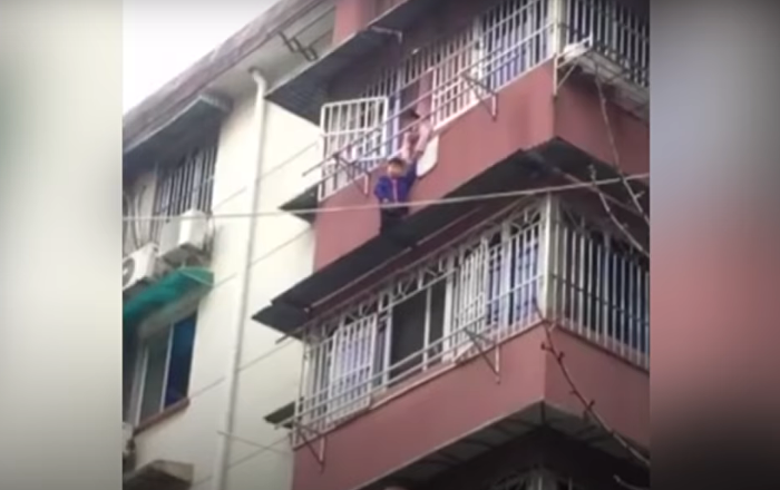 تمكنت فتاة صغيرة من إنقاذ حياة شقيقها بعدما تدلى من نافذة شقة في مبنى سكني في مدينة نينغبو، شرقي الصين.