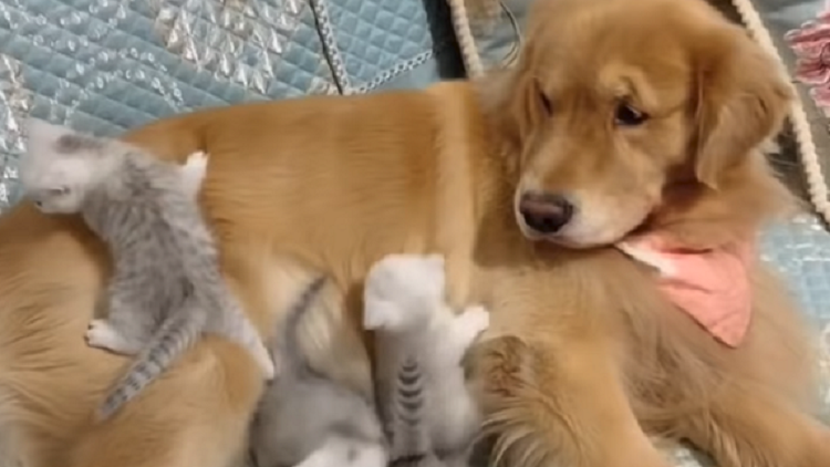 انتشر مقطع فيديو يوثق صداقة منقطعة النظير بين كلب وأربع قطط حديثة الولادة، في مشاهد جميلة نالت إعجاب آلاف المتابعين عبر شبكات التواصل الاجتماعي.