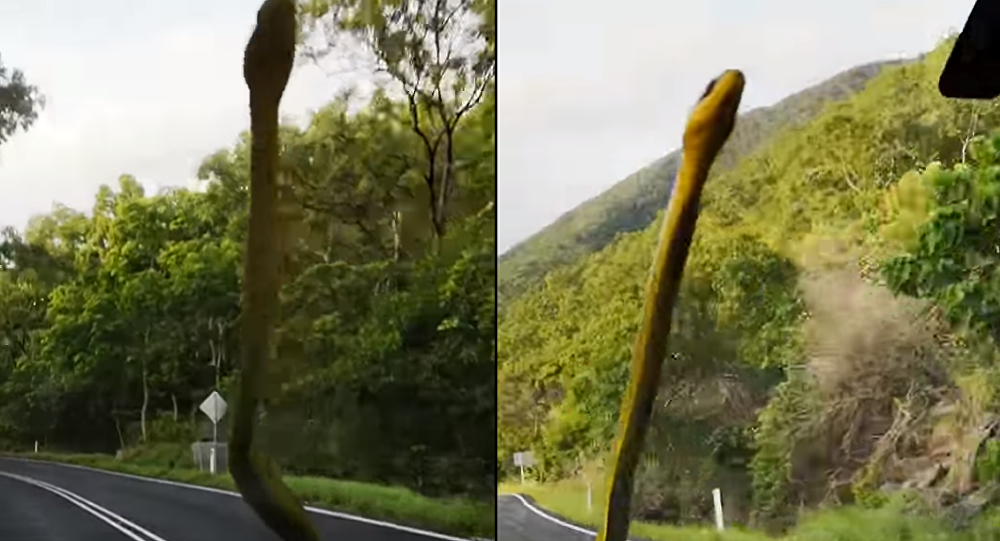 وتوقفت العائلة على طرف الطريق لطلب المساعدة للتخلص من الأفعى الفضولية.
