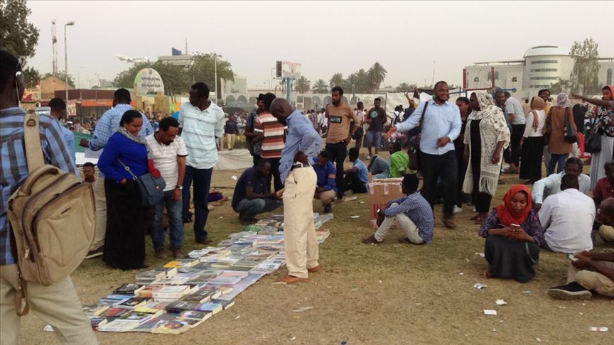 بينما كان الآلاف يهتفون بالشعارات السياسية المطالبة بسجن ومحاسبة رموز نظام الرئيس السوداني المخلوع عمر البشير، كان البعض ممن هم في ساحة الاعتصام يتحلقون حول معرض مفتعل للكتب المعروضة على الأرض داخل ساحة الاعتصام.