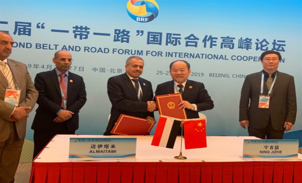 وقع وزير الصناعة والتجارة الدكتور محمد الميتمي اليوم مع نائب رئيس اللجنة الوطنية للإصلاح والتنمية الصيني مي نينج، على مذكرة تفاهم لانضمام اليمن لطريق الحرير.