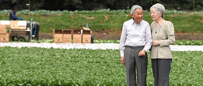 (المقالة الأصلية مكتوبة باللغة اليابانية بقلم ماسودا ميكي. الترجمة من الإنكليزية. صورة العنوان: الإمبراطور أكيهيتو والإمبراطورة ميتشيكو يتمشيان في مزرعة خضراوات في أراضي حي أوهيناتا المستصلحة بكارويزاوا في محافظة ناغانو بتاريخ 23 أغسطس/آب من عام 2018. حقوق الصورة لجيجي برس).