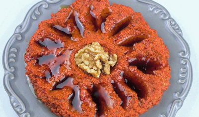 المحمرة التركية لا تختلف عن الشامية كثيراً، إذ أن لها نكهة إضافية تزيد من لذتها تأتي عبر إضافة دبس الرمان والجوز والكعك المطحون.