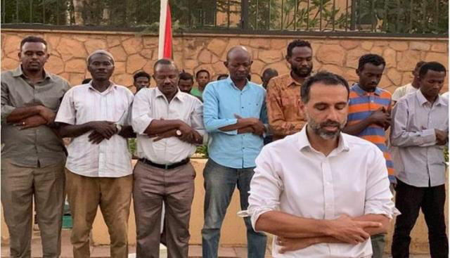 في مشهد نادر لسفير دولة أجنبية قام سفير بريطانيا لدى السودان، بإمامة الصلاة لعدد من المصلين أمام منزله في الخرطوم، والذين دعاهم لمائدة إفطار وهو يصلي في الشارع إماما.