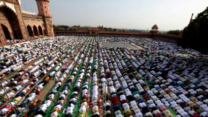 EPAمصلون يؤدون صلاة العيد في جامع تاج المسجد في مدينة بوبال الهندية