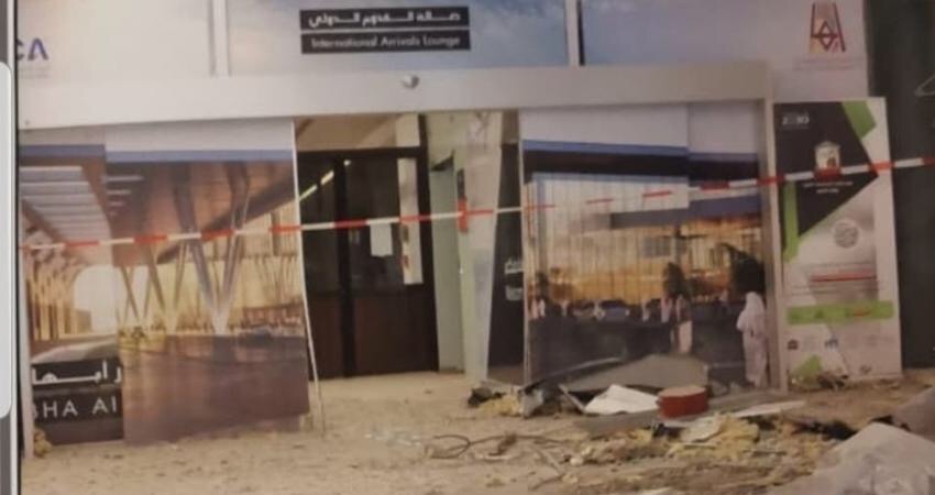 وأظهرت الصور دمارا داخل صالة الوصول في المطار، وآثار حطام بأرض المطار وأمام بوابة صالة القدوم.