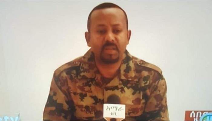 وظهر آبي أحمد مرتديا الزي العسكري.