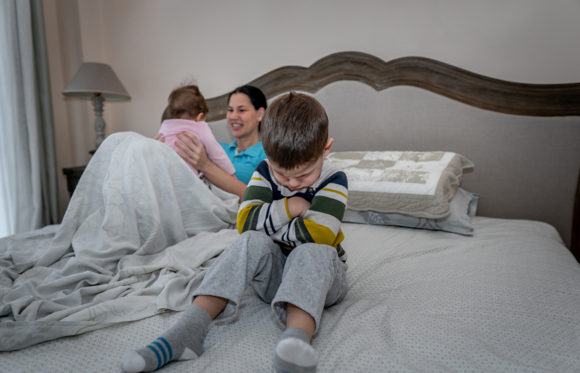 سوف يرى الطفل الأكبر الوضع الجديد على أنه أخذ بعض الميزات التي كان ينفرد بها، ويظن أنه سيبقى في الخلفية، على الرغم من أن الأمر ليس كذلك بالنسبة للآباء، إلا أنه من الطبيعي أن يشعر الأخوة الأكبر بهذا الشعور.