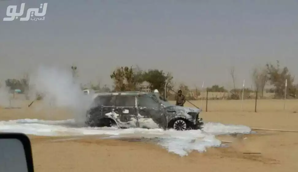 تداول نشطاء مواقع التواصل الاجتماعي في السعودية صور لسيارة محترقة بالكامل من نوع لكزس LX موديل 2016.