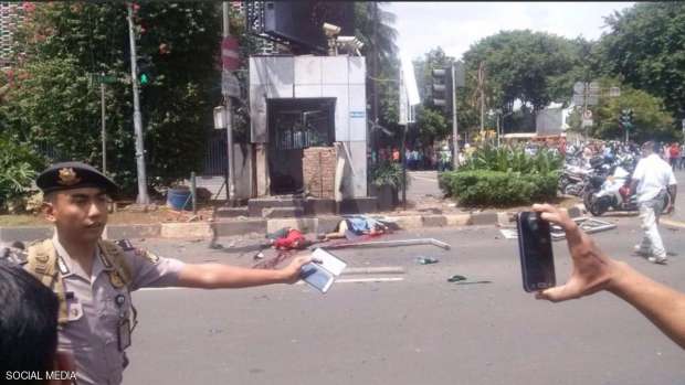 وقعت عدة انفجارات وإطلاق رصاص في العاصمة الإندونيسية جاكرتا، اليوم الخميس، أدت إلى سقوط 5 قتلى واصابة 22 آخرين.