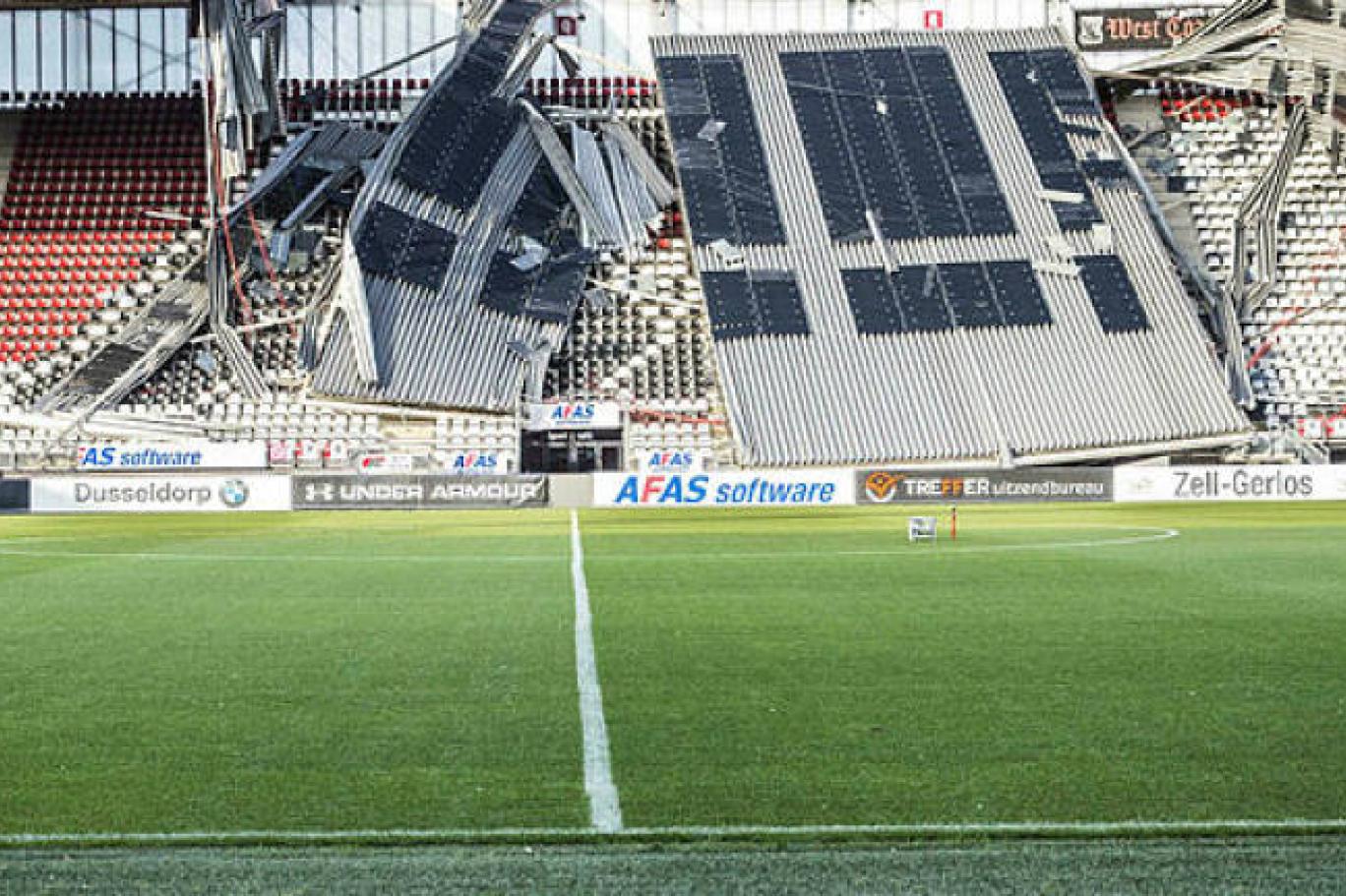 انهار جزء من سقف استاد "آفاس" معقل فريق ألكمار بسبب الرياح القوية التي ضربت كافة أنحاء هولندا يوم السبت.