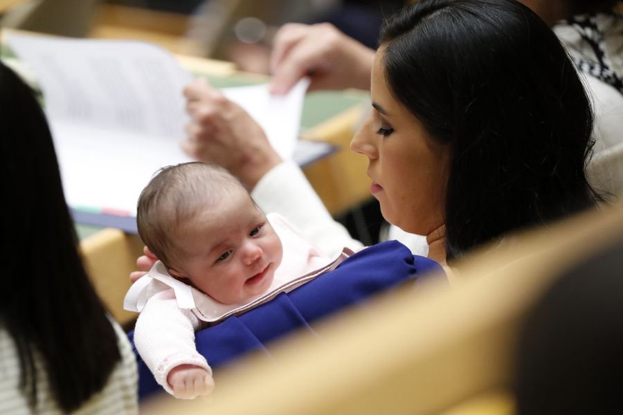 ونشرت وكالة شينخوا الصينية في موقعها على "تويتر" صورا للرضيع في حضن والدته "جابرييلا رودريجيز" سيدة السلفادر الأولى، أثناء إلقاء والده رئيس البلاد كلمته أمام الجمعية.