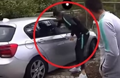 ويظهر رونالدو في الفيديو يركض باتجاه سيارة تقف على قارعة الطريق ويحاول مازحا "سرقة" هاتف من سيدة تجلس في المقعد الأمامي، خلال نزهة مع زملائه خارج الفندق الذي يقيم به المنتخب البرتغالي أثناء معسكره الحالي.