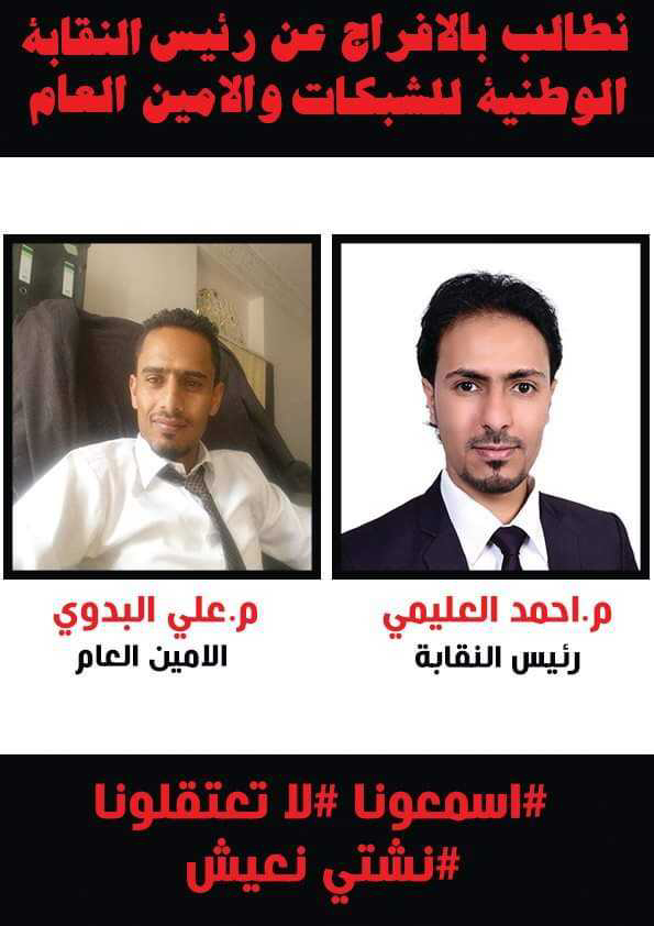 واستنكرت النقابة قيام جهاز الامن والمخابرات باعتقال رئيس النقابة والأمين العام بعد أن تم حل المشكلة القائمة بين ملاك الشبكات ووزارة الاتصالات من قبل عضو المجلس السياسي الأعلى على خلفية الزيادة السعرية لخدمات الانترنت ومصادرة اجهزة ملاك الشبكات من قبل وزارة الاتصالات ووضع آلية مزمنة لمعالجة ذلك.