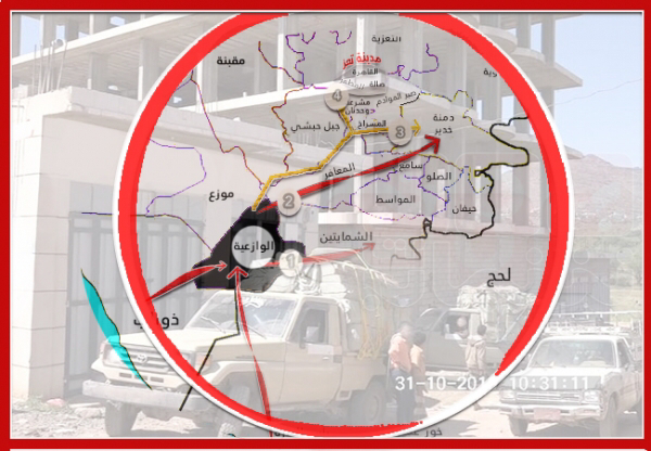 وبين البداية والنهاية، هناك نقطة ترانزيت في مديرية "الوازعية" يصلها المهربون، ومنها يتوجهون كلٌ إلى وجهته الرئيسية: منهم من يتوجه شرقا إلى "المركز" في مديرية الشمايتين، حيث يواصل المهربون هناك تشييد امبراطوريتهم التجارية من اشلاء الوطن الممزق؛ ومنهم من يتوجه شمالا نحو مفرق "الصافية"، إذا كانت وجهته النهائية مناطق سيطرة ميليشيا الحوثي في الدمنة والحوبان.
