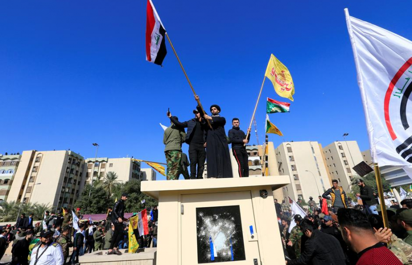 لقيادات الحشد الشعبي الحليفة لإيران نفوذ واسع في مؤسسات الدولة العراقية الأمنية والعسكرية، وتسيطر على الجزء الأكبر من قرارها الذي أثبته عجز الحكومة العراقية عن القيام بواجبها وفق اتفاقيات فيينا 1961، والتي تفرض على العراق «التزام خاص باتخاذ كافة الوسائل اللازمة لمنع اقتحام أو الإضرار بمباني البعثة وصيانة أمن البعثة من الاضطراب أو من الحط من كرامتها».
