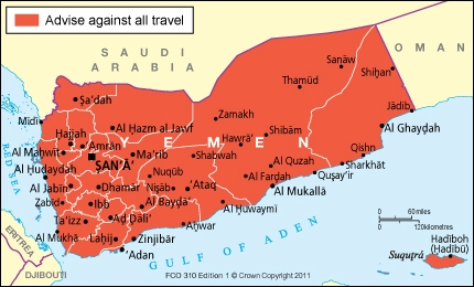 كما لا توجد إجراءات إخلاء معمول بها، بما يتماشى مع سياسة وزارة الخارجية منذ فترة طويلة بشأن المساعدة في اليمن. ولهذا تنصح وزارة الخارجية البريطانية باستمرار بعدم السفر إلى اليمن ومغادرة مواطني المملكة المتحدة لليمن منذ مارس 2011.