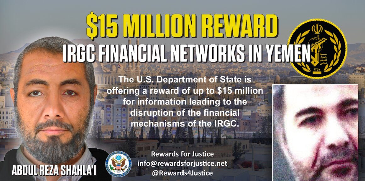 وكانت وزارة الخارجية الأميركية قد عرضت الشهر الماضي مكافأة قدرها 15 مليون دولار مقابل معلومات تؤدي إلى شهلائي وتعطيل الآليات المالية للحرس الثوري الإيراني.