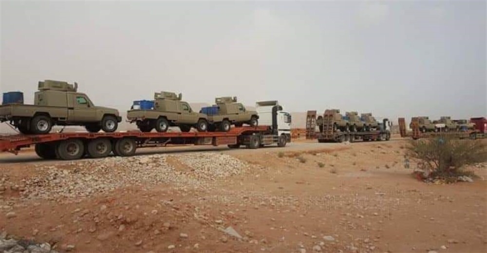 وأضافت المصادر أن تلك القوات خرجت من محافظة شبوة، مشيرةً إلى أن من بين العتاد العسكري "عشرات الأطقم وسيارات إسعاف".