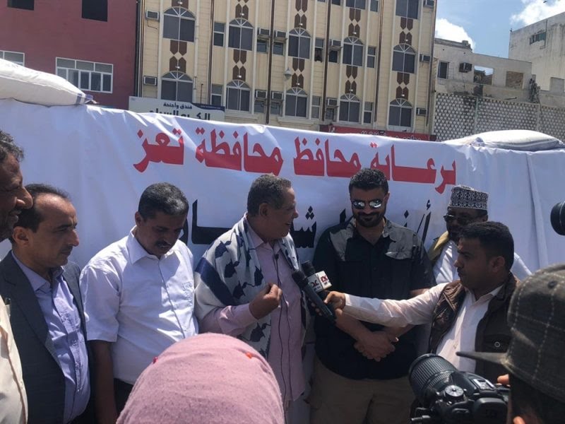 وأضاف المخلافي “تم تسليم القافلة لمحافظ محافظة عدن احمد سالم ربيع من قبل وكيل محافظة تعز محمد عبدالعزيز الصنوي المكلف من محافظ المحافظة نبيل شمسان”.