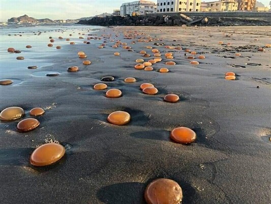 في ظاهره غريبه جدا خروج اعداد هائله من قناديل البحر علي شواطئ سواحل عدن اللهم سلم سلم