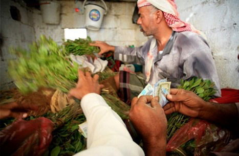 وتشير التقديرات إلى أن نحو 90% من الذكور البالغين يمضغون القات طيلة ثلاث إلى أربع ساعات يومياً في اليمن الذي يواجه ملايين من سكانه خطر المجاعة. وتقوم النساء أيضا بمضغ القات وكذلك الأطفال.