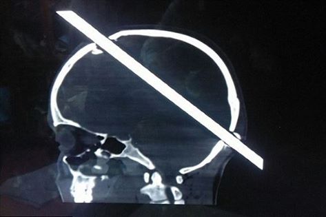 وأظهرت صور تم التقاطها للشاب في المستشفى فظاعة الحادث، لكن هذا لم يحل دون نجاح الأطباء في إنقاذ حياته، بعد أن قاموا بفتح جمجمته، وأخرجوا القضيب الحديدي إثر عملية جراحية معقدة استمرت 5 ساعات.