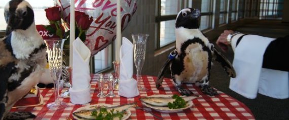 البطريقان اللذان يرجع أصلهما إلى جنوب أفريقيا، تناولا العشاء احتفالا بالفالنتاين وسط خدمة وترحاب راقٍ.