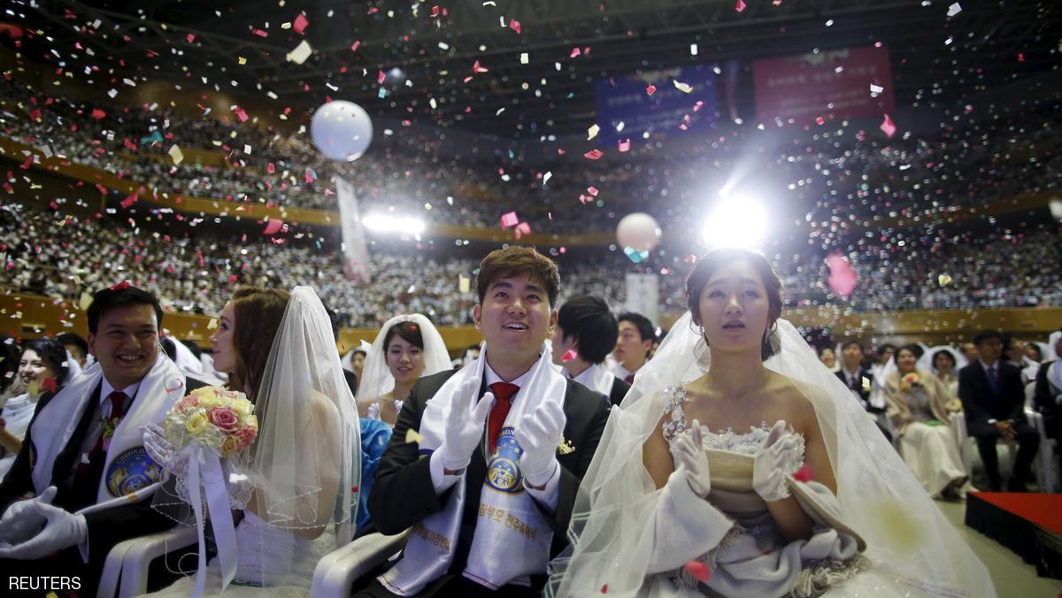 احتضنت كوريا الجنوبية، السبت، حفل زفاف جماعي شارك فيه 3 آلاف من الأزواج، وفدوا من 62 دولة حول العالم، فضلا عن 12 ألف زوج آخرين، شاركوا عبر "الإنترنت".