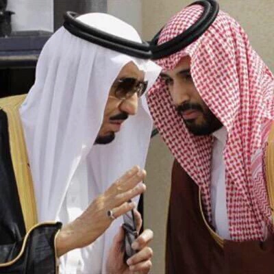 تداول ناشطون على مواقع التواصل الاجتماعي صورة للملك السعودي سلمان بن عبدالعزيز وهو يتناول اطراف الحديث مع نجله وزير الدفاع السعودي وولي ولي العهد الامير محمد بن سلمان.