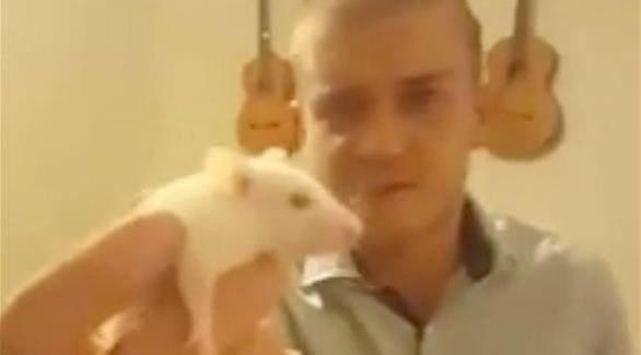 ويظهر في مقطع الفيديو الذي يعود نشره إلى شهر يناير (كانون الثاني) الماضي، شاب غاضب يدخل شقته متجهاً نحو صندوق، ملتقطاً منه فأراً أبيض حي، ملتهماً رأسه بالكامل دفعة واحدة، وكاد الشاب أن يتقيأ، لولا تناوله الكحول.